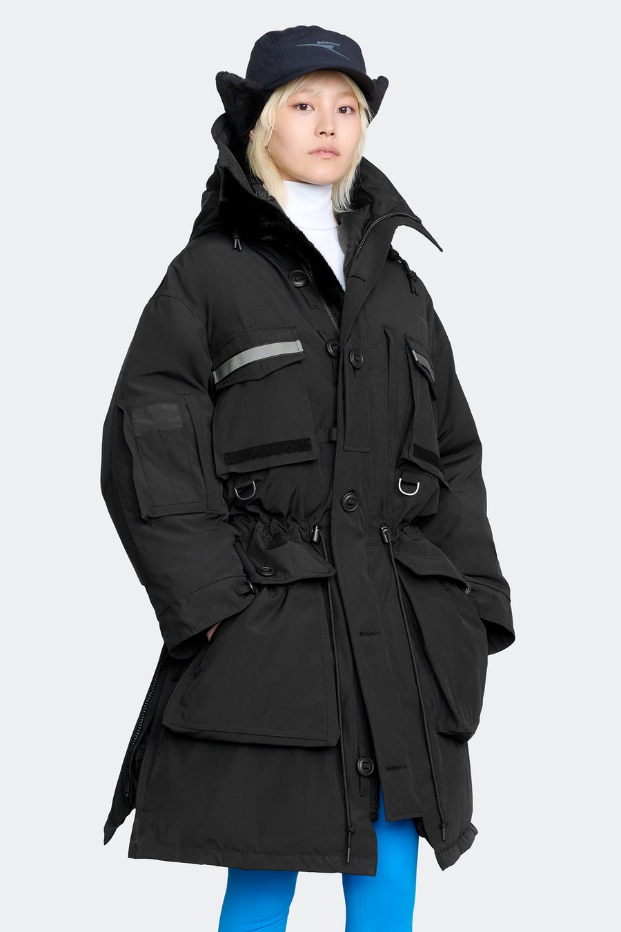 「ライダー パーカ」は、 90年代半ばに登場したタクティカルスタイル「ピース キーパー パーカ」のデザインを受け継いでいます。オーバーサイズのシルエットに、リフレクター、ユーティリティポケット、シェイプしたウエスト、サイドジッパーが巧みに調和しています。カナダグースが誇る伝統的な素材、アークティックテックを使用し、独特のスラブ生地がリッチな印象と滑らかな手触りを添えます。