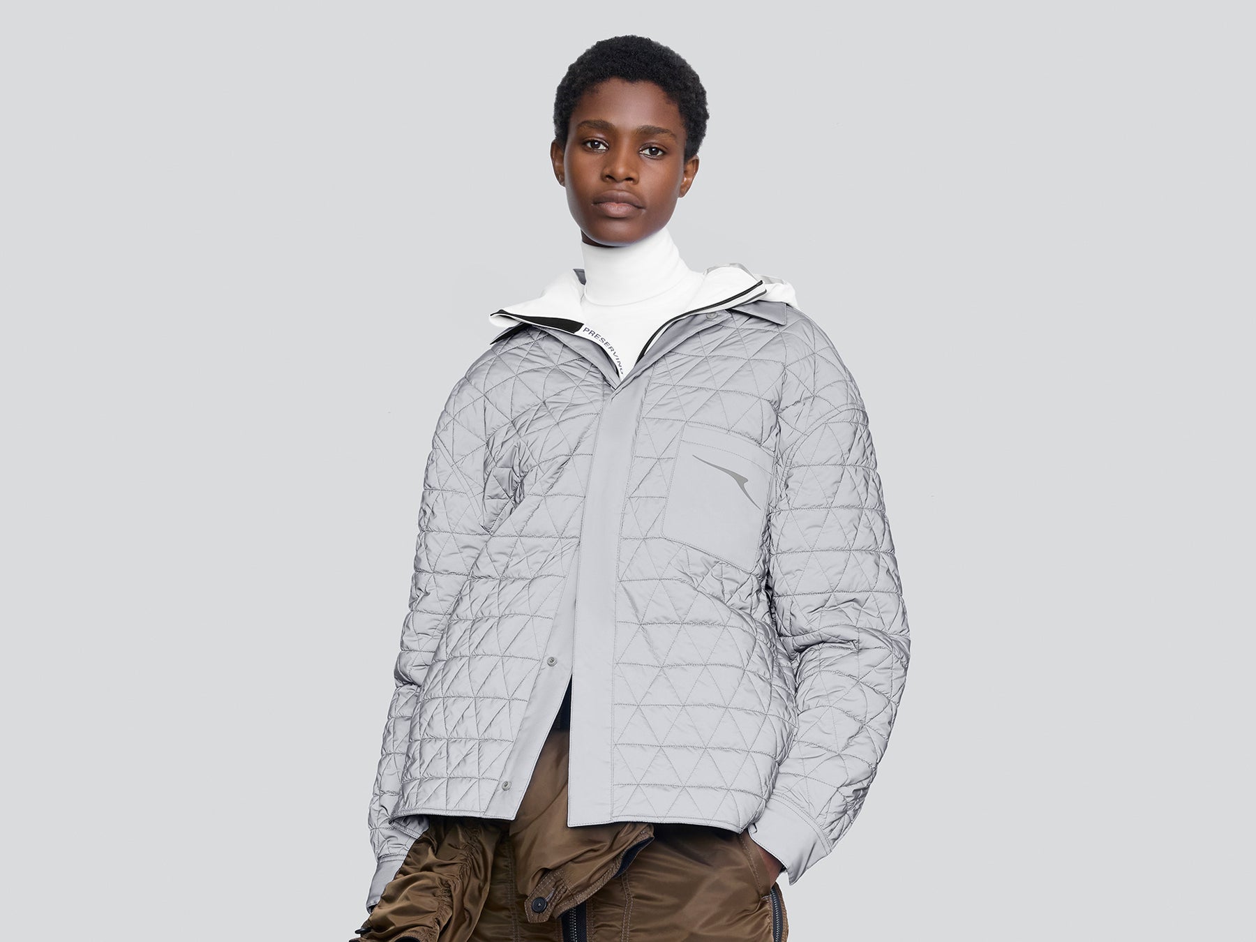 「チヌーク ハイブリッジ」は、オーバーサイズのフィット感で、モノクロのダイヤモンドキルトのグラフィックを施すことで、質感をアレンジしています。