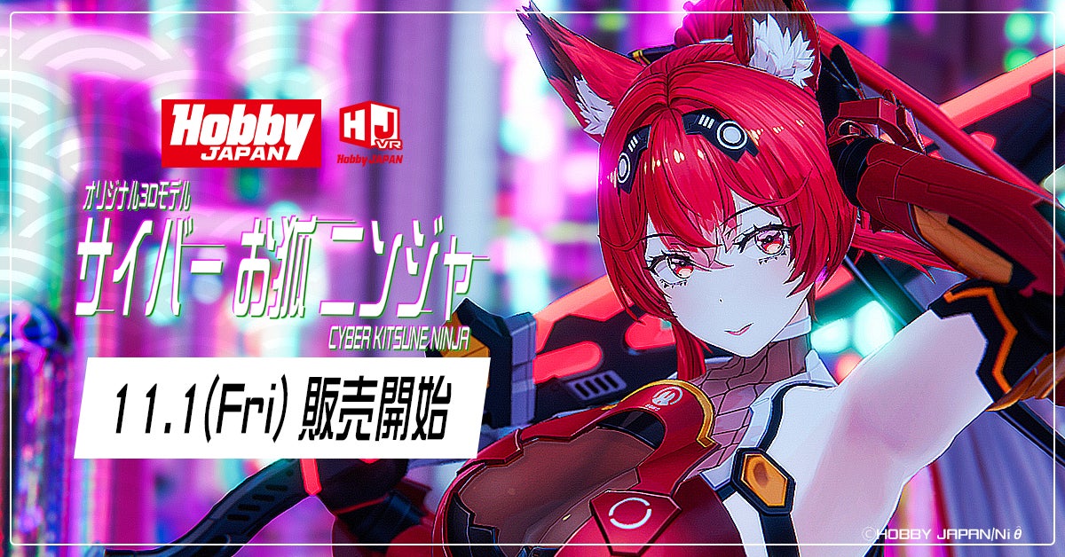 ホビーメーカー株式会社壽屋(本社:東京都⽴川市/代表取締役社⻑:清⽔⼀⾏)は3Dアバター製品「サイバーお狐ニンジャ」の発売日を11月1日(金)11時と発表しました。