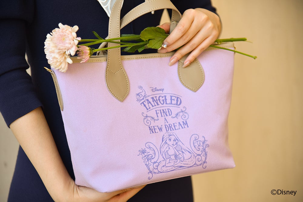 「ラプンツェル」を象徴する塔のプリントや「パスカル」のチャームなど、遊び心満載のデザイン。