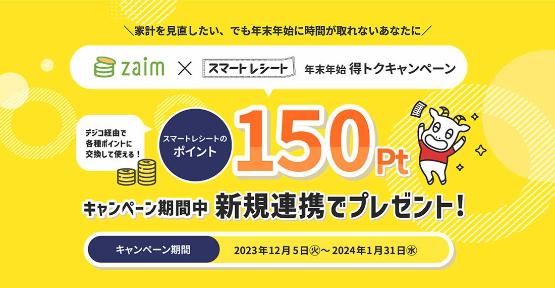 「Zaim」×「スマートレシート®」「年末年始 得トクキャンペーン」を実施~年末年始の家計管理をおトクに!ラクラクに!~
