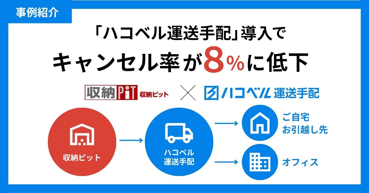 【事例紹介】トランクルーム『収納ピット』の会員に『ハコベル運送手配』サービスを提供!運搬申し込み後のキャンセル率を8%にまで低下、顧客利便性の向上を実現