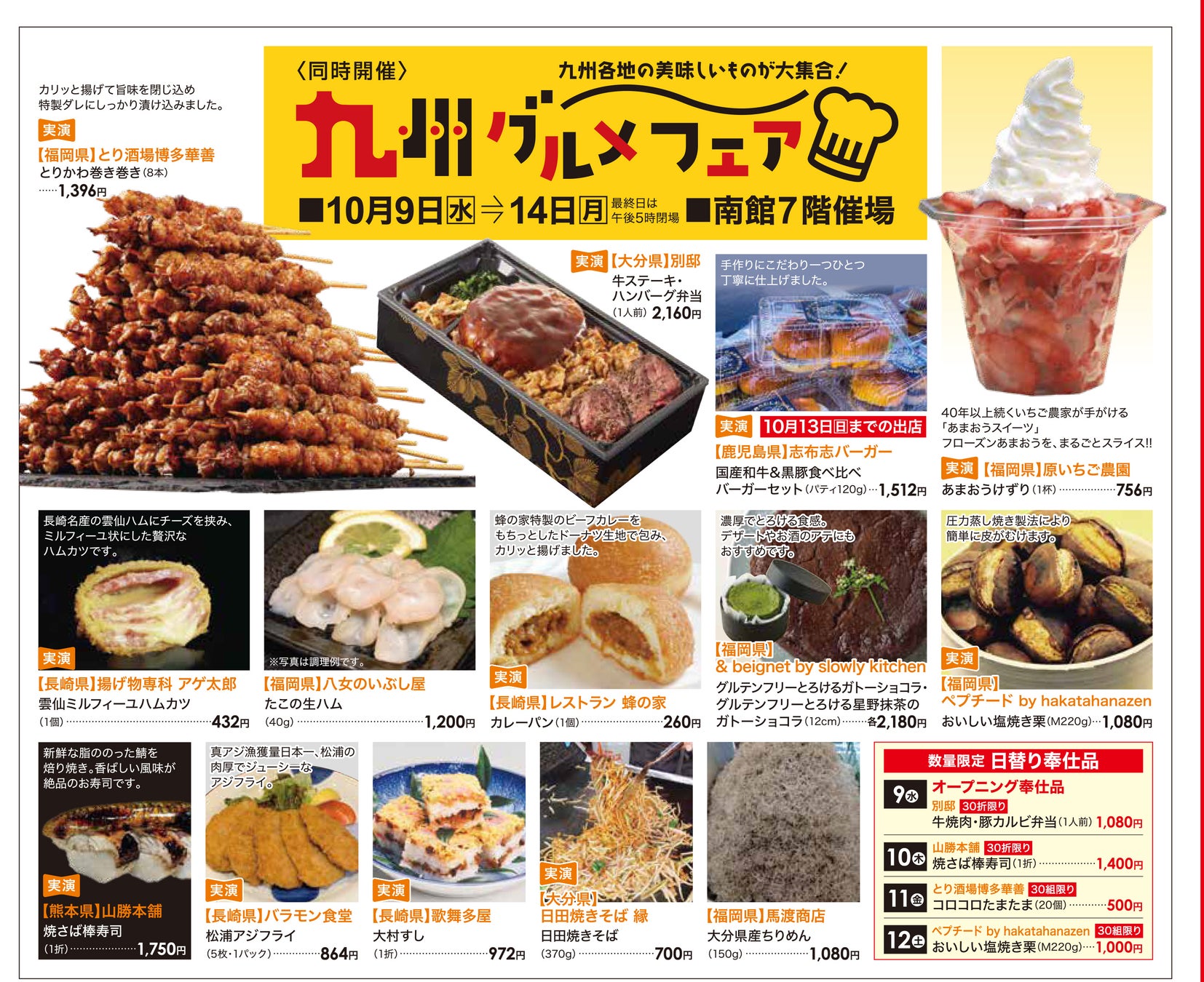 江戸の職人技・九州各県のうまいものを選りすぐり会場で同時に開催。食も技も楽しめるイベントです。■10月9日(水)〜14日(月)■南館7階催場