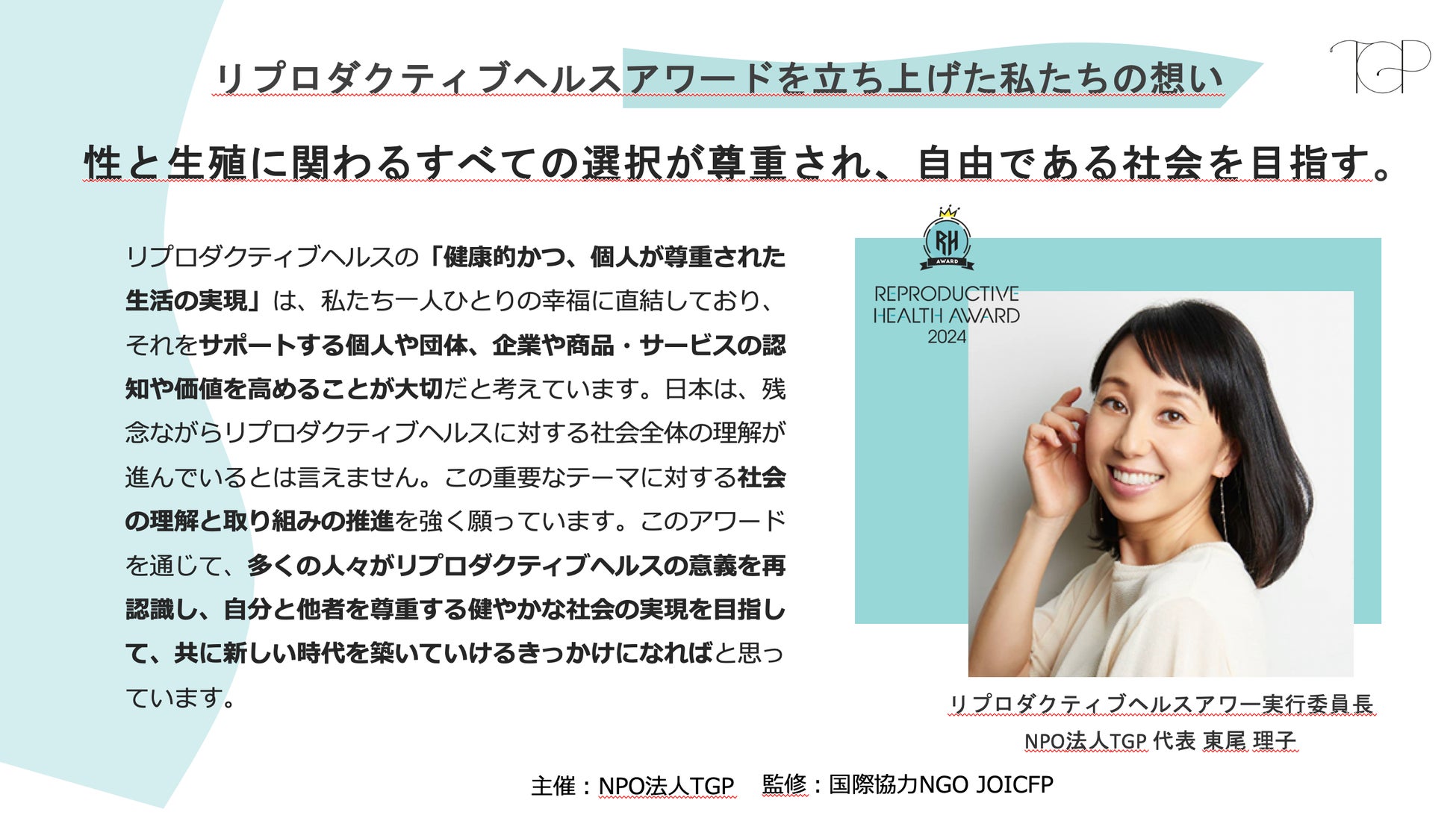 リプロダクティブヘルスアワード実⾏委員会事務局(NPO法⼈TGP内)