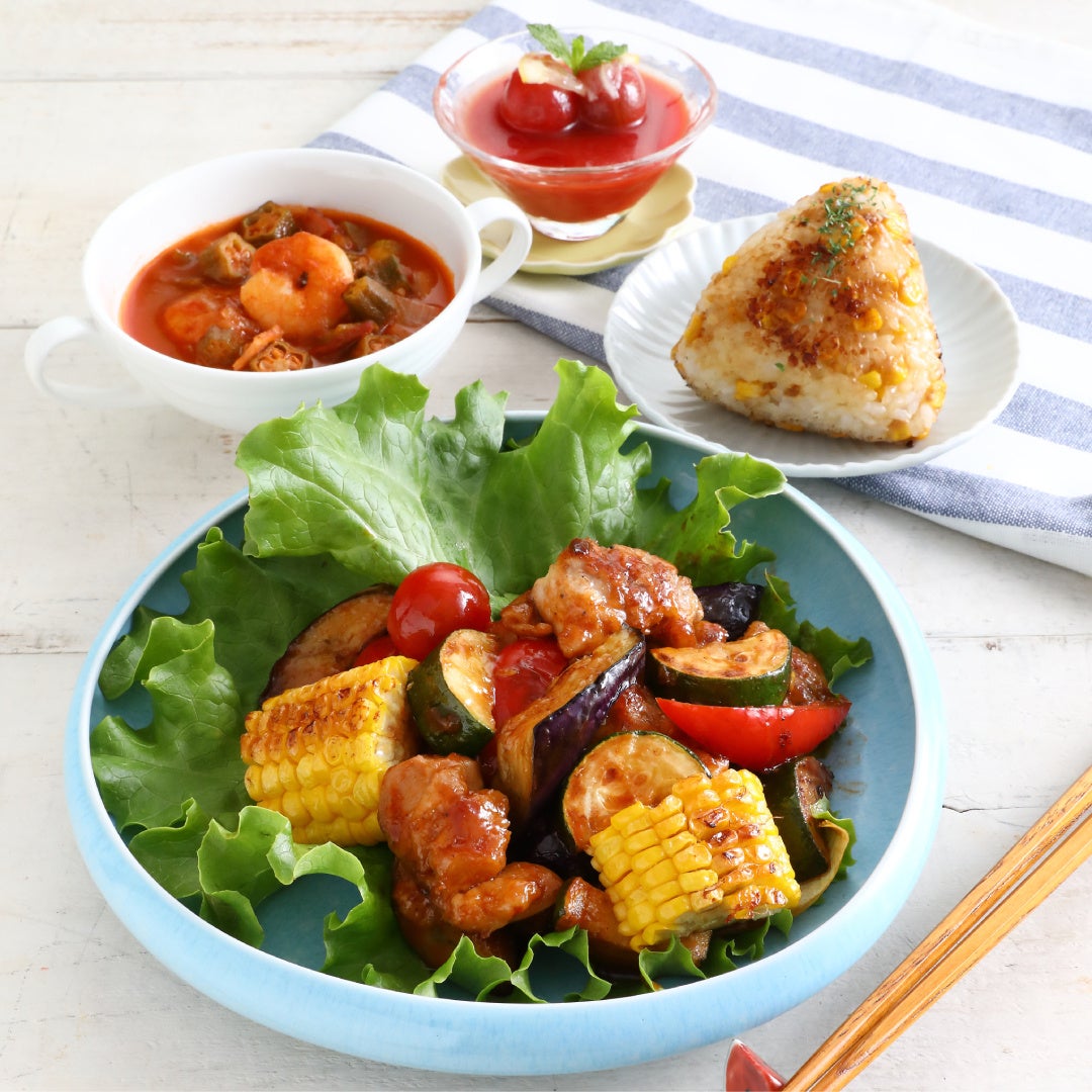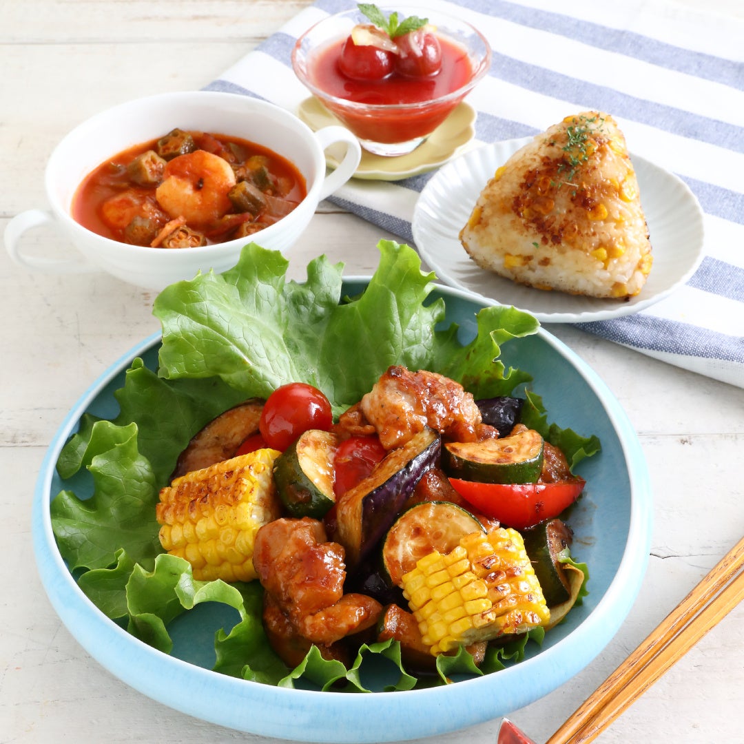 ■メニュー:夏にぴったり彩り野菜バーベキューメニュー 1日に必要な野菜350g使用(2人分)