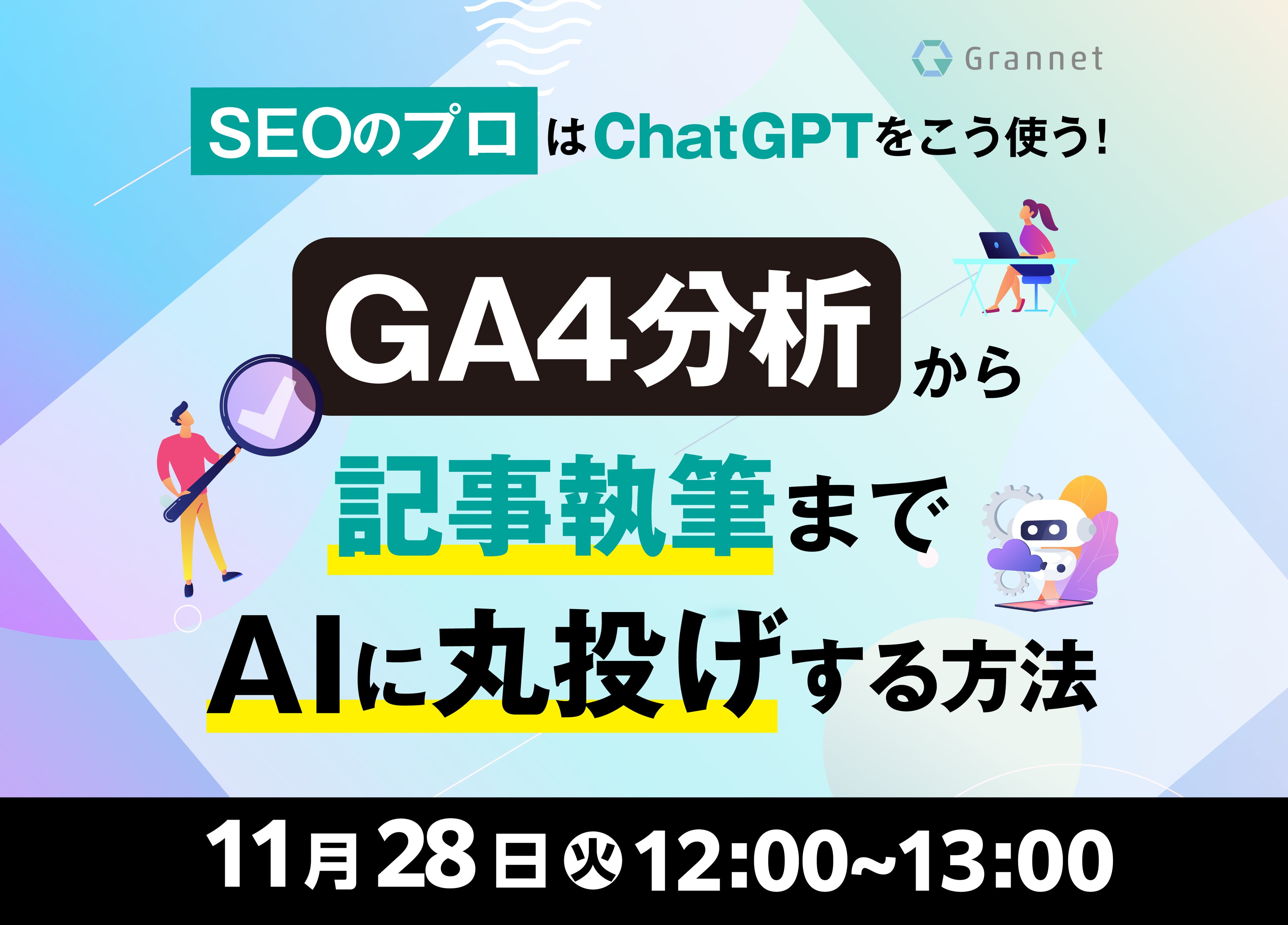 【11月28日開催】SEOのプロはChatGPTをこう使う!GA4分析から記事執筆までAIに丸投げする方法