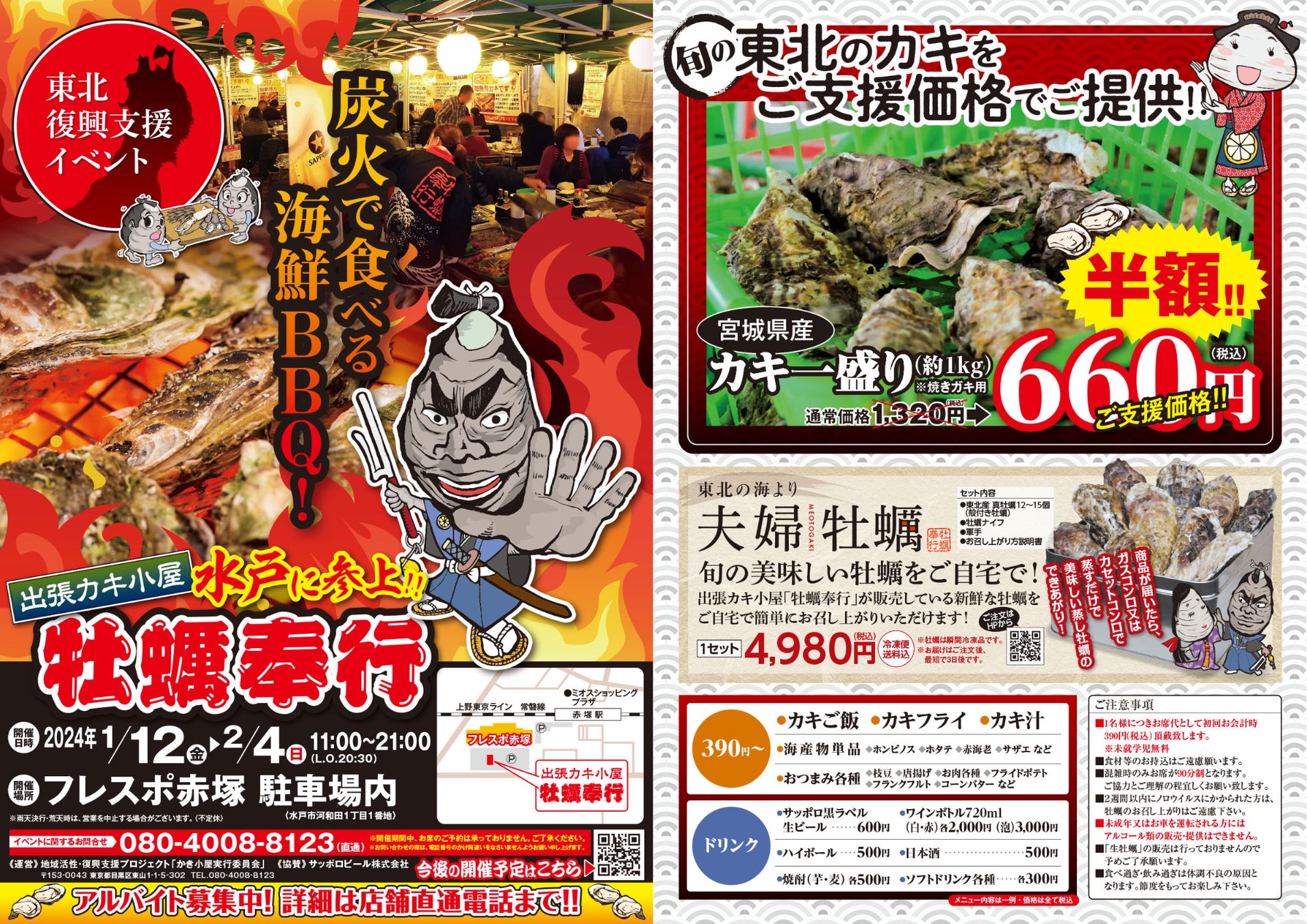 『フレスポ赤塚店』に登場!地域活性・東北復興支援プロジェクト 出張カキ小屋『牡蠣奉行』(かきぶぎょう)