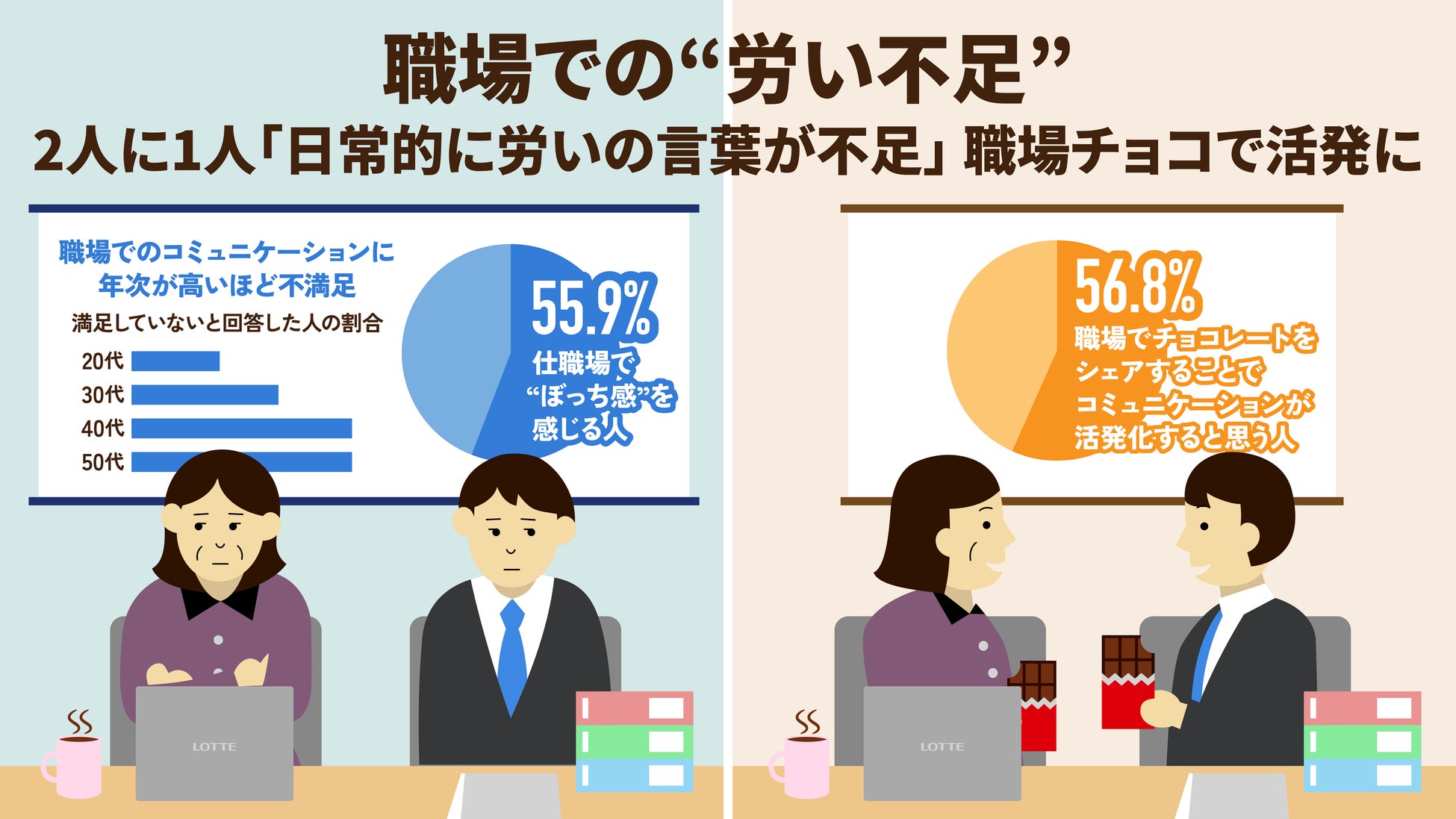 - 職場のコミュニケーションに関する調査 - 職場での“労い不足”が浮き彫りに。コミュニケーションに年次が高いほど不満足、半数以上が職場で“ぼっち感” チョコレートのシェアによる労いの増加に期待