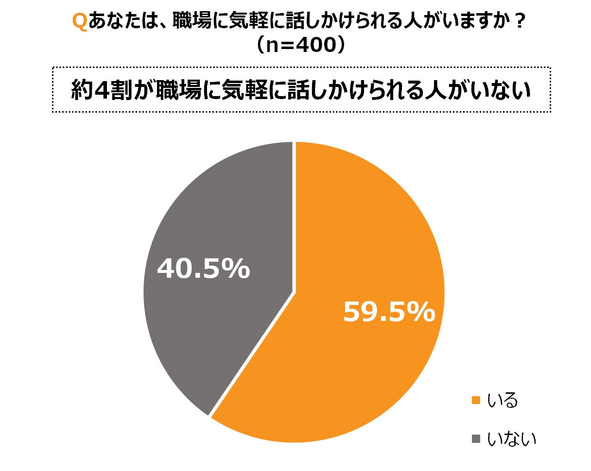 約4割が「職場に気軽に話しかけられる人がいない」、「職場のコミュニケーションに満足し
