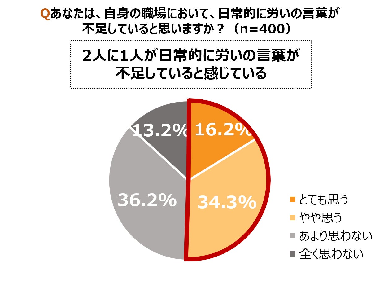 2人に1人が日常的に労いの言葉が不足していると感じている。