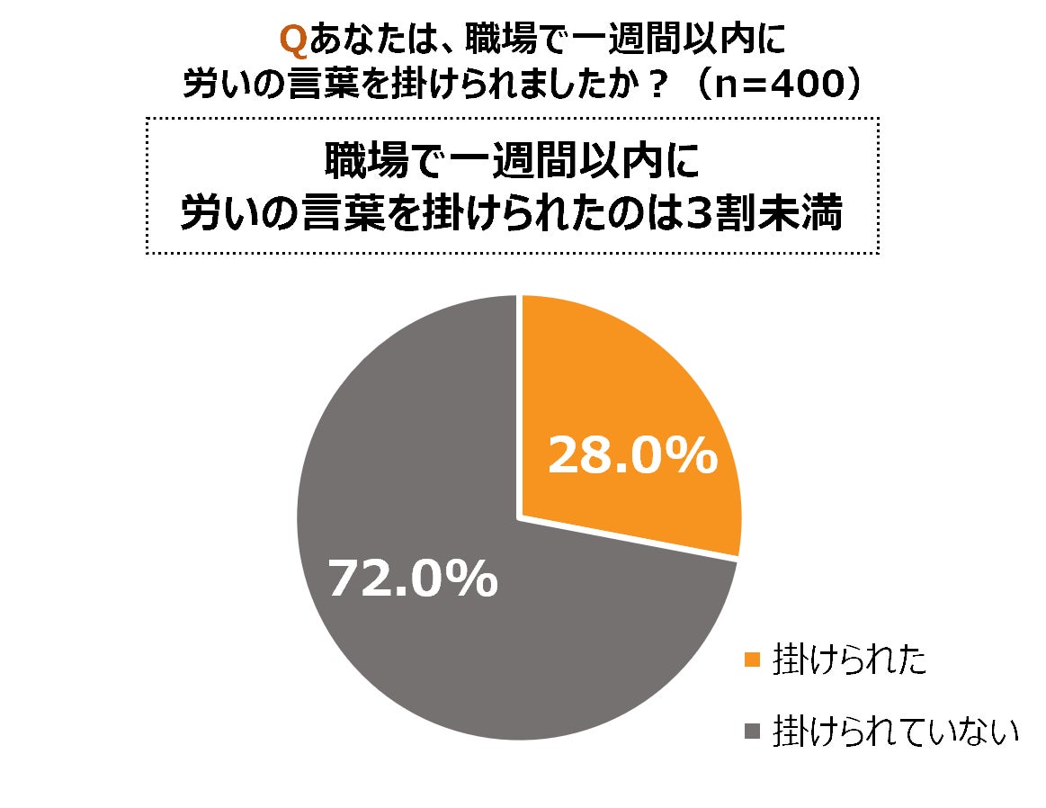 職場で一週間以内に労いの言葉を掛けられたのは3割未満。