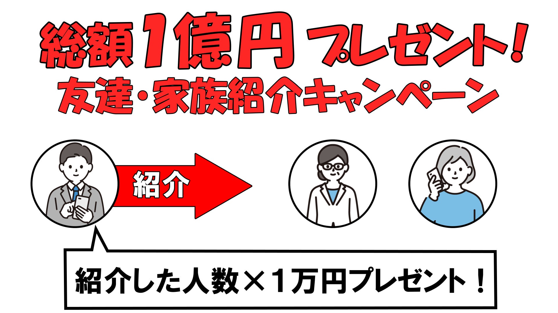 ★総額1億円プレゼント!★ 友達・家族紹介キャンペーンスタート