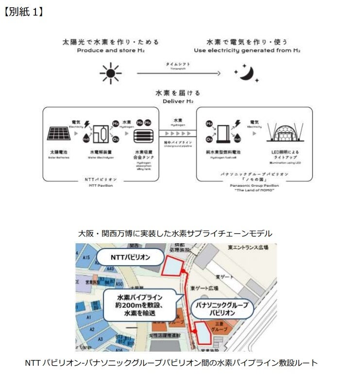 NTT アノードエナジーとパナソニックは、万博会場での水素サプライチェーンモデルの実装を通じ