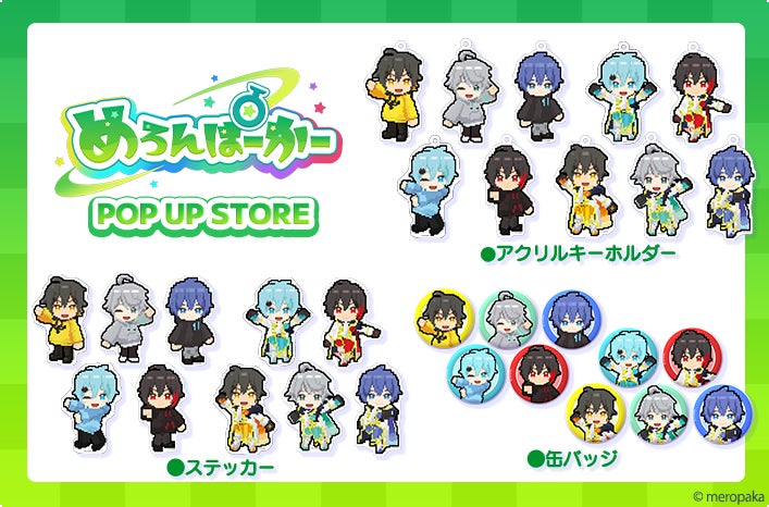 ポップアップストアでは、『テラビット』のオリジナルデザインの『めろんぱーかー』とアクリルキーホルダー、ステッカー、缶バッジといったコラボグッズを販売しています。