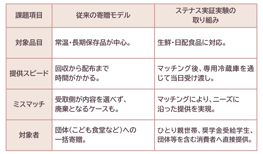 本実証実験では、この仕組みを通じて食品ロスの削減と社会福祉の増進の両立を図り、持続可能な食品循環モデルの社会実装に向けた検証を行いました。