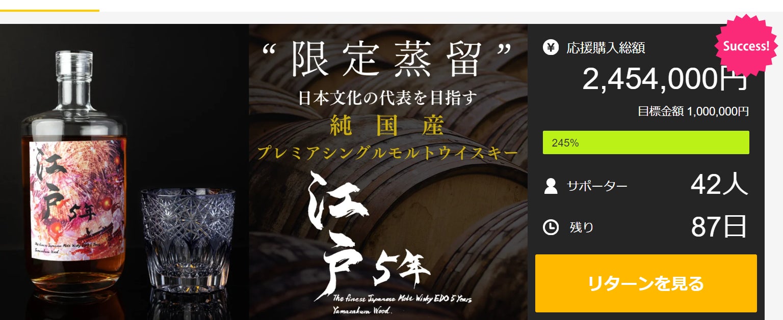 私たちは、昨年からスタートの新事業で日本に眠る素晴らしい作品や技術を世界に発信していく日本文化継承プロジェクト「狼煙(のろし)」を事業として進めております。 このプロジェクトの一環として、純国産のシングルモルトウイスキー「江戸5年」の製造を開始しました。