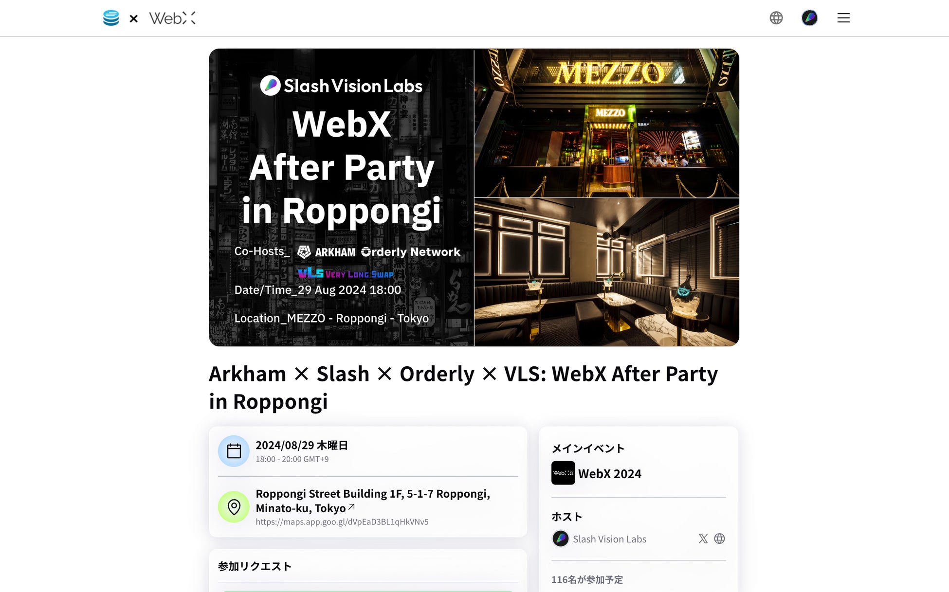 Arkham × Slash × Orderly × VLS: WebX After Party in Roppongi( https://coinpost.events/ja-JP/eventPost/105 )