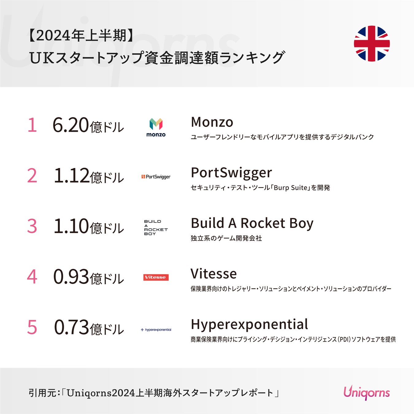2024年上半期 UK 資金調達額ランキングトップ10企業