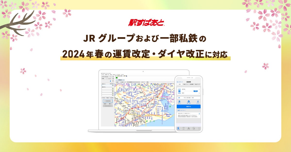 【駅すぱあと】JRグループおよび一部私鉄の2024年春の運賃改定・ダイヤ改正に対応
