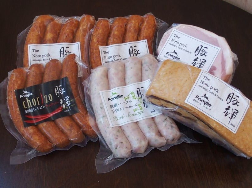 もちもちとした食感と甘みを持つお米育ちのプレミアム能登豚「豚輝」は、ソーセージ、ハム、ベーコンの製造に使用されています。