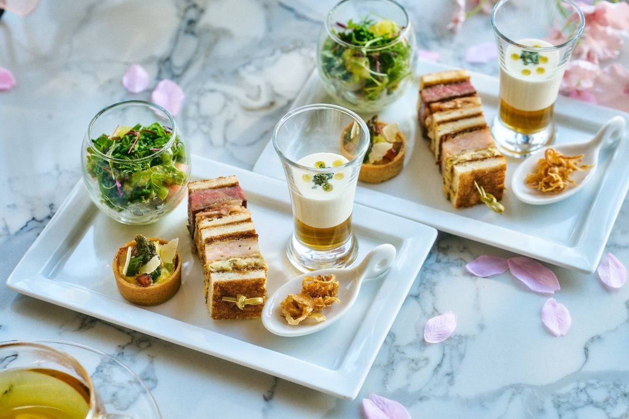 スペシャリティレストラン「Ocean Milano」のシェフが手掛けるセイボリー。みずみずしい春野菜と魚介を合わせたサラダや、新玉葱のヴルーテなど、季節の移り変わりを感じられるメニューを揃えました。