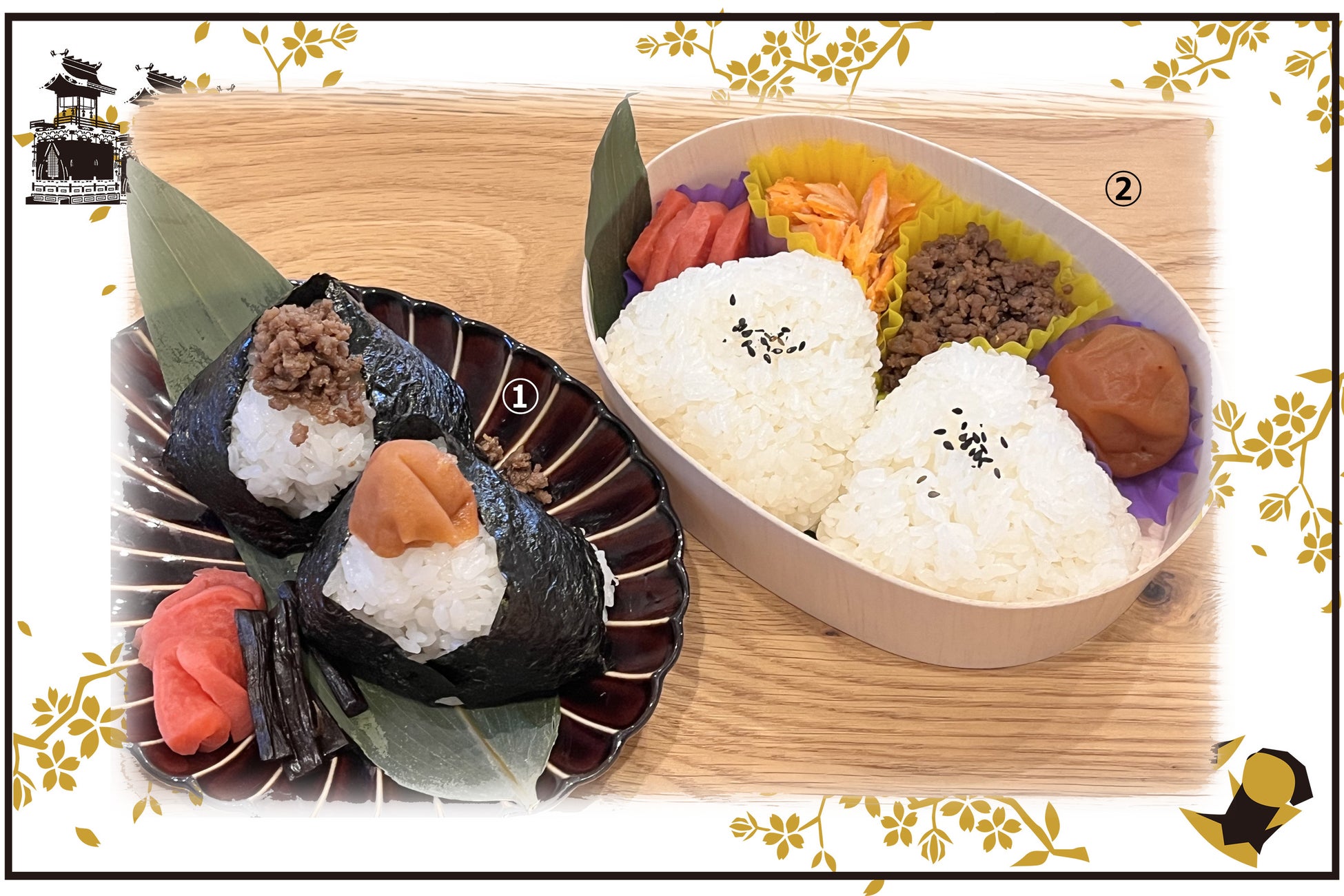 ①飛騨牛そぼろおにぎり(1個)450円、紀州南高梅おにぎり(1個)300円