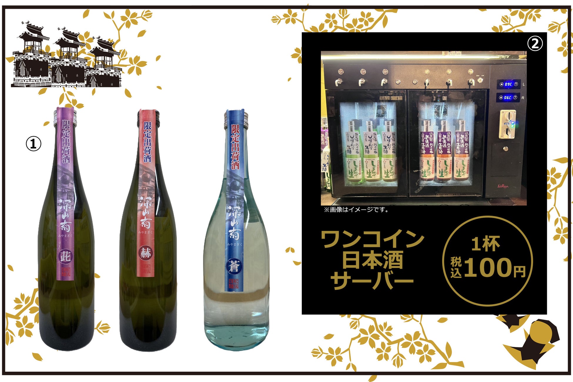 上三之町で200年続く酒造店。今回会場にワンコイン日本酒サーバーが登場!歴史ある地酒をワンコイン(税込100円)で飲み比べ。