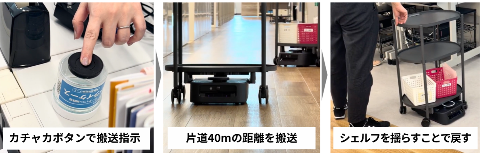 カチャカボタンやシェルフを揺らすだけで指示が出せ、現場への定着も容易