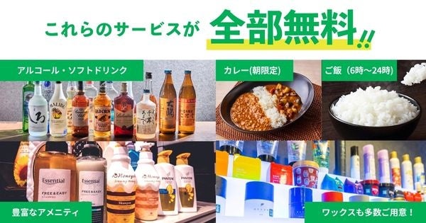 安心お宿はオールインクルージブの豪華カプセルホテルとなっております。多数の無料コンテンツを揃えておりますので、お客様は「手ぶら」 でOK!有名ブランドのアメニティや高級ヘアドライヤーもご利用いただけます。ご滞在中は人工温泉・サウナ・マッサージチェアが何度でも無料でご利用いただけます。白米・カレー・お茶漬け・ふりかけ・味噌汁・フリードリンク・アルコールなど、充実したお食事・お飲み物メニューも全て無料でご用意して、皆様のお腹も満たします。