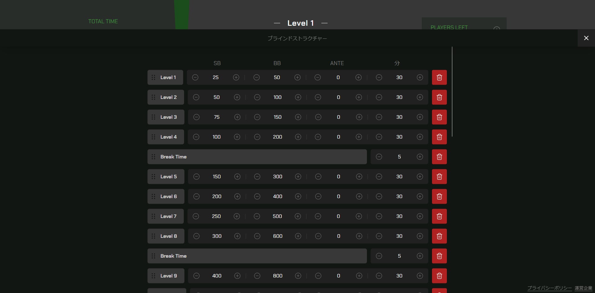音での通知機能により、ゲームに集中したままブラインドのタイミングを逃さず、スムーズなゲーム進行が可能に。また、ブラインド設定の保存・お気に入り機能で、毎回設定する手間を省くことができます。