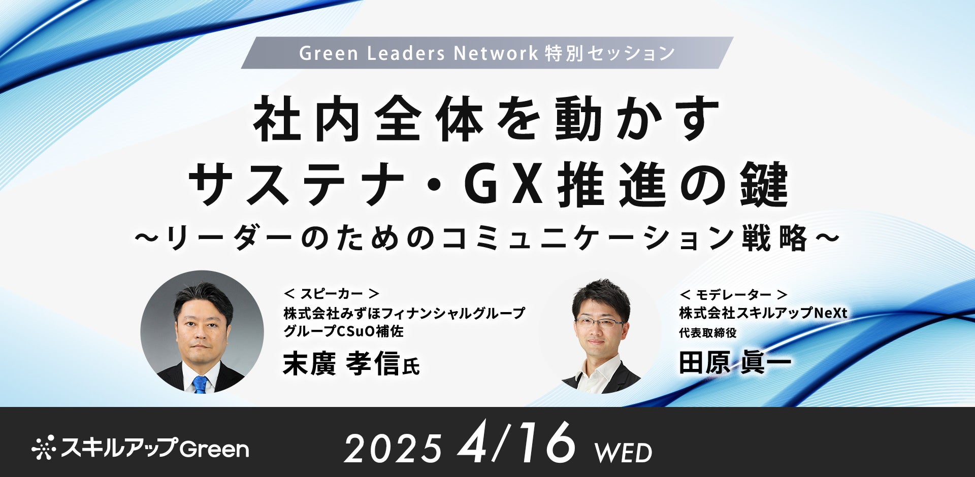 株式会社スキルアップNeXt(東京都千代田区、代表取締役:田原 眞一、以下「スキルアップNeXt」)企業のサステナビリティ・GX担当者向けに、実践知とネットワークを提供する会員制サロン『Green Leaders Network』(以下、GLN)を2025年4月より本格始動します。