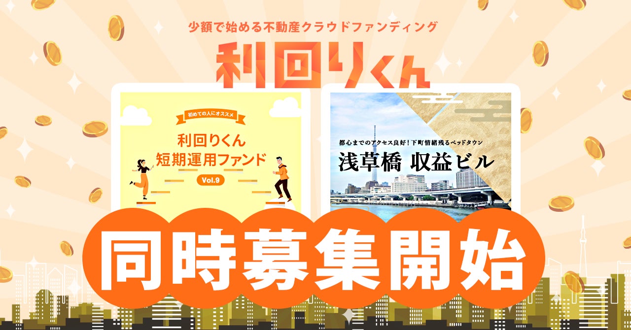 “世界中の不動産投資を民主化する。人生100年時代をテクノロジーと資産運用で豊かに。”をミッションに不動産クラウドファンディング国内会員数No.1『利回りくん』が自社保有の区分マンションを対象とした「利回りくん短期運用ファンドVol.9」と「浅草橋 収益ビル」2つのファンドの募集を、12月11日(月)から開始いたします。