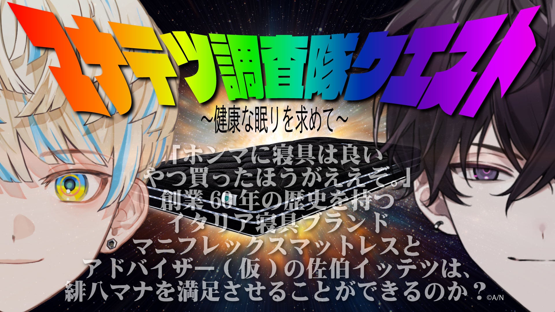 この度、イタリアの総合寝具ブランド「マニフレックス」(輸入元:株式会社フラグスポート、代表取締役社長:山根崇裕、東京都港区)は、にじさんじとのコラボ企画の第2弾として、人気VTuber・佐伯イッテツさん、緋八マナさんによる特別配信企画「マナテツ調査隊×マニフレックス」を実施いたします。