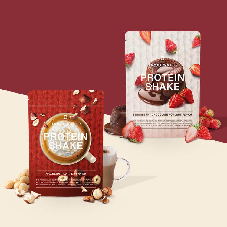 女性のための栄養と美味しさを追求した“ご褒美プロテイン”『BAMBI WATER プロテインシェイク』に冬季限定フレーバー「ストロベリーフォンダンショコラ」「ヘーゼルナッツラテ」が新登場!