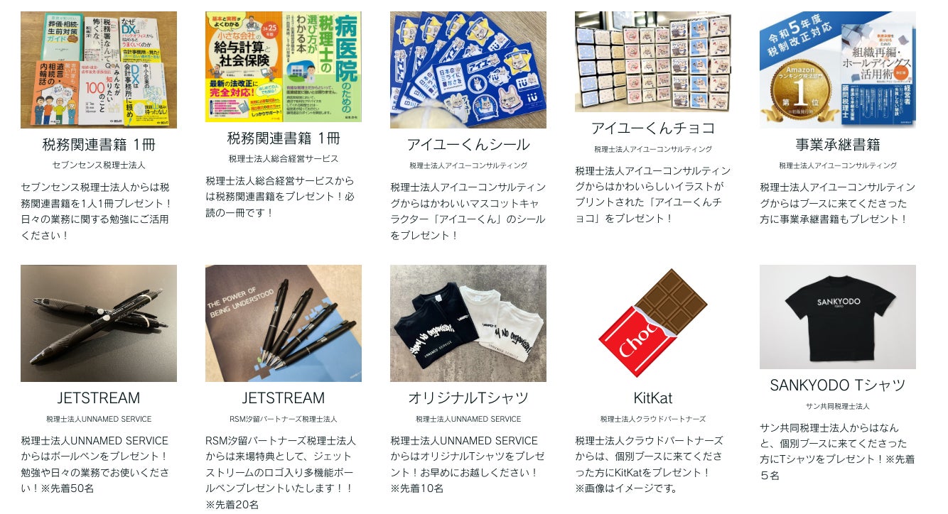 この機会に出展税理士法人のことを良く知っていただくとともに、リレーションを構築してください。