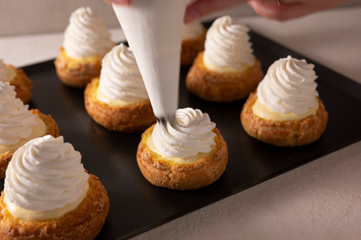 椿屋珈琲 五反田東急スクエア店、ダッキーダック 綾瀬店では、店内でシュー生地を焼きあげることで、作りたてのシュークリームを提供しています。