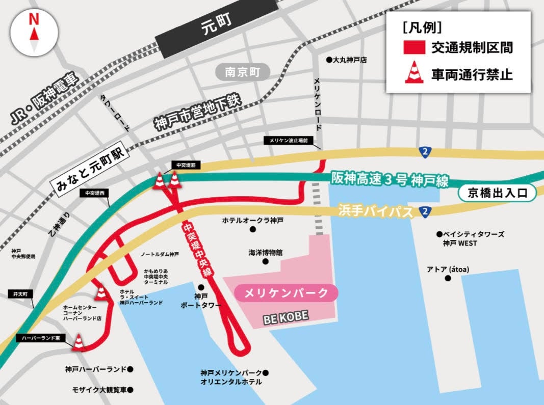 みなとHANABI-2024-神戸を彩る5日間の開催に伴い、来場者の安全確保のため下記区間で交通規制をおこないます。