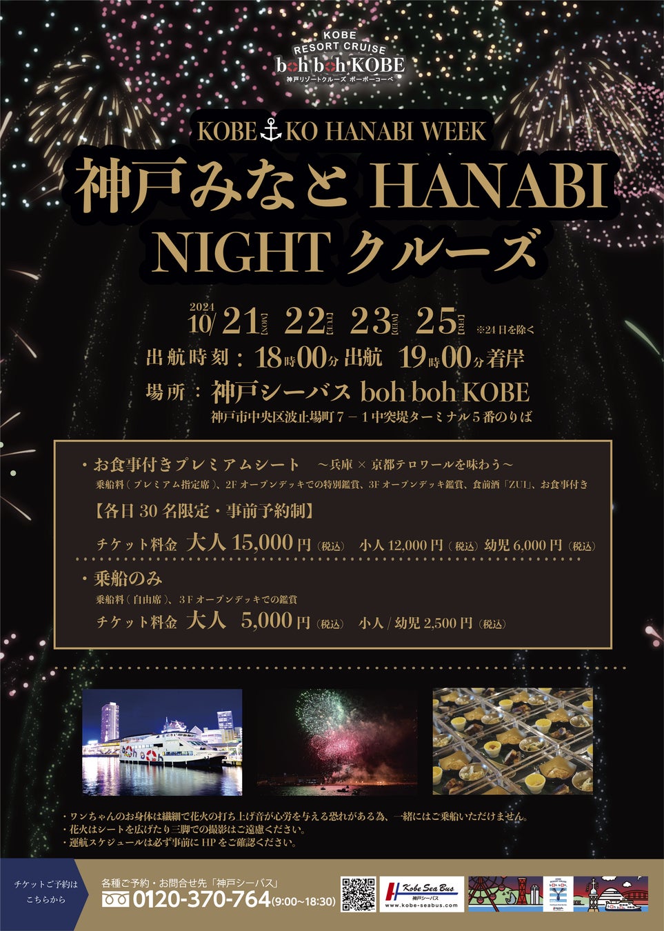 2024年10月21日からKOBE-KO HANABI WEEKスタート!boh boh KOBEで「神戸みなとHANABI NIGHTクルーズ」を開催!