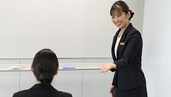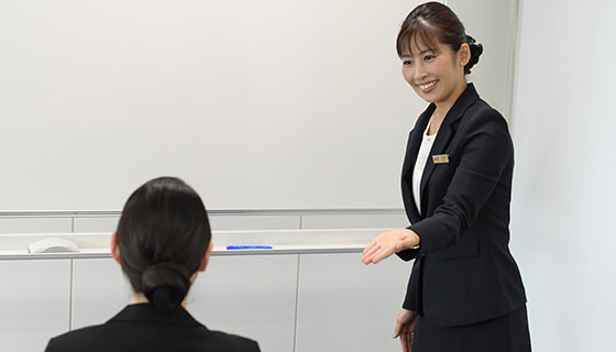 空港旅客サービスのお客様対応を想定したプログラムでコミュニケーション力の重要性やグランドスタッフとしてのサービスマインドを感じ、一歩踏み出す行動力を身につけます。