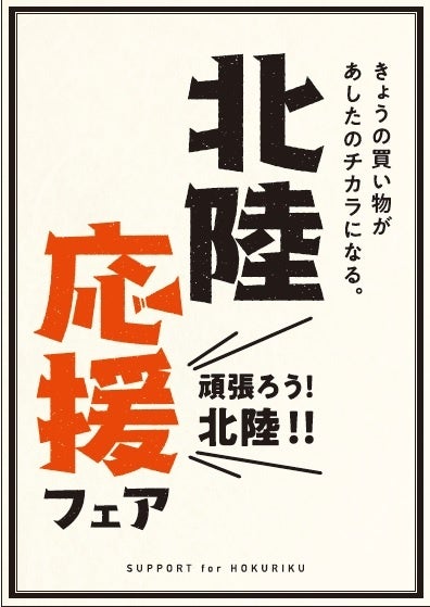 なお、「北陸応援フェア」の収益の一部につきましては、被災地域の生活支援のためにお役立ていただく予定です。