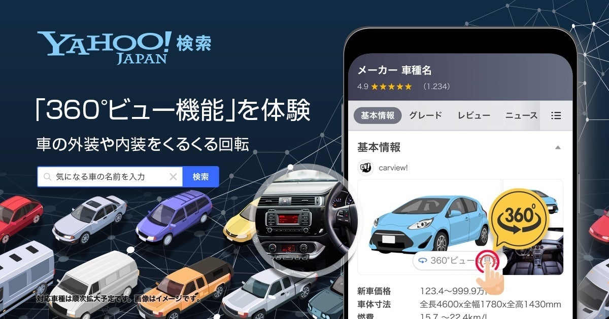 【Yahoo!検索】自動車の車種名で検索すると、車の外装や内装を様々なアングルから見ることができる「360°ビュー機能」を提供開始