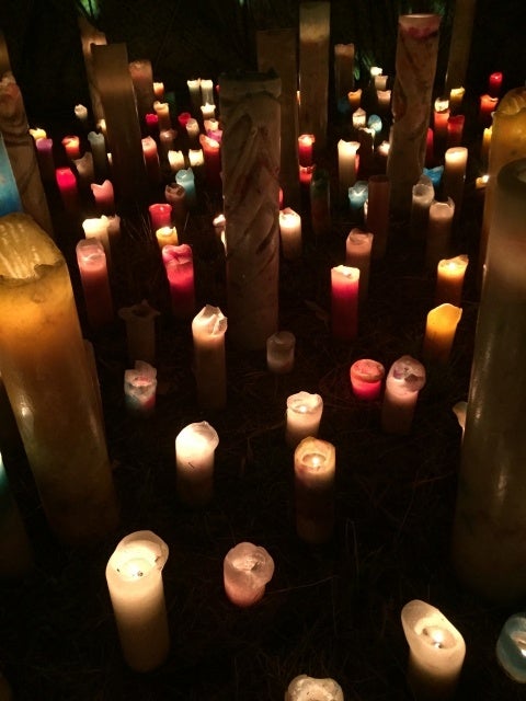 本イベントでは、ガーランドや照明などを利用し、焚き⽕、テーブル、イスなどで、非日常的でか