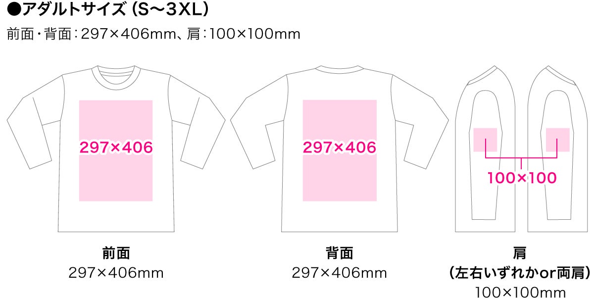 プリント箇所は、前面、背面、両肩の最大4箇所に自由なデザインが可能です。
