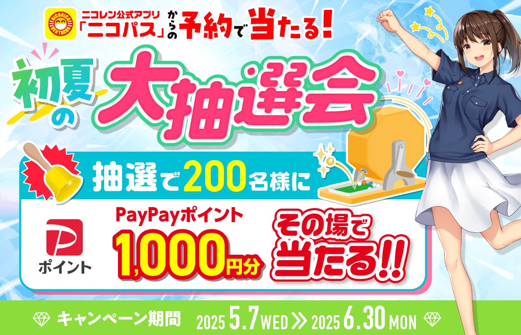 ニコニコレンタカー(運営:株式会社レンタス/店舗開発:株式会社MIC)は、2025年5月7日(水)から、公式アプリの利用促進を目的とした新たなキャンペーンを開始しました。キャンペーン期間中にアプリ「ニコパス」でレンタカーを予約してくれた方全員が対象。抽選で総勢200名様にPayPayポイント1,000円分をその場でプレゼントします!