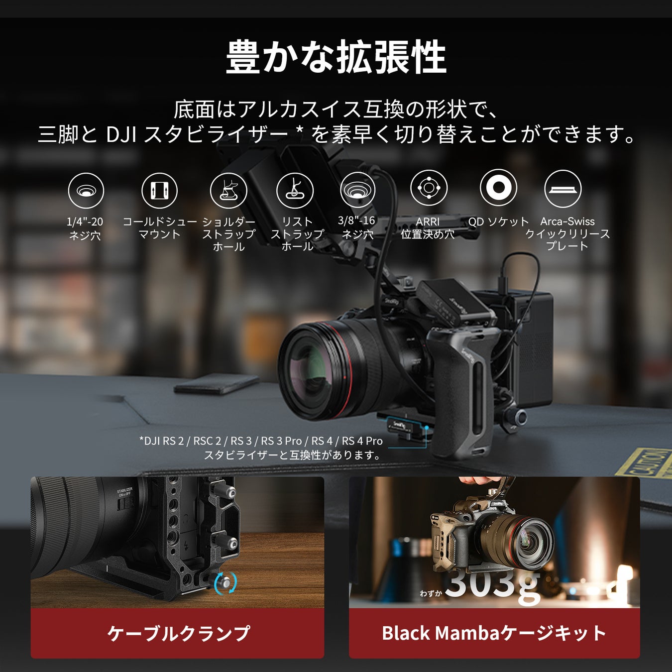人間工学に基づいた「Black Mamba」トップハンドルが付属し、重量はわずか303gで、快適で安定した手持ち撮影体験を提供します。