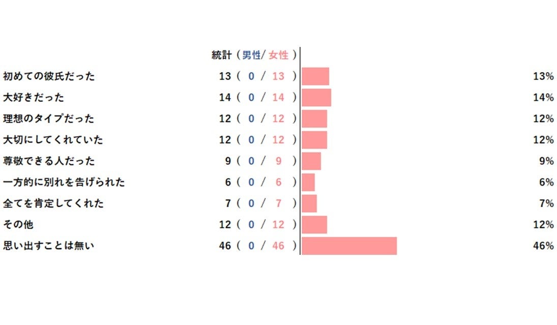 元彼を思い出す理由であてはまるものは?」とアンケート調査をした結果、1位は『思い出すことは無い』でした。