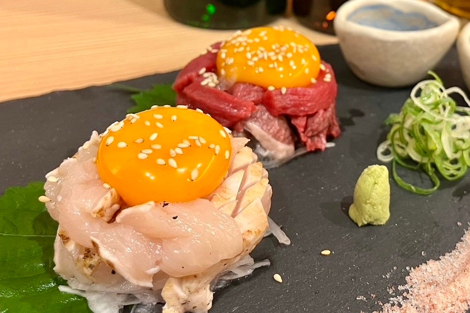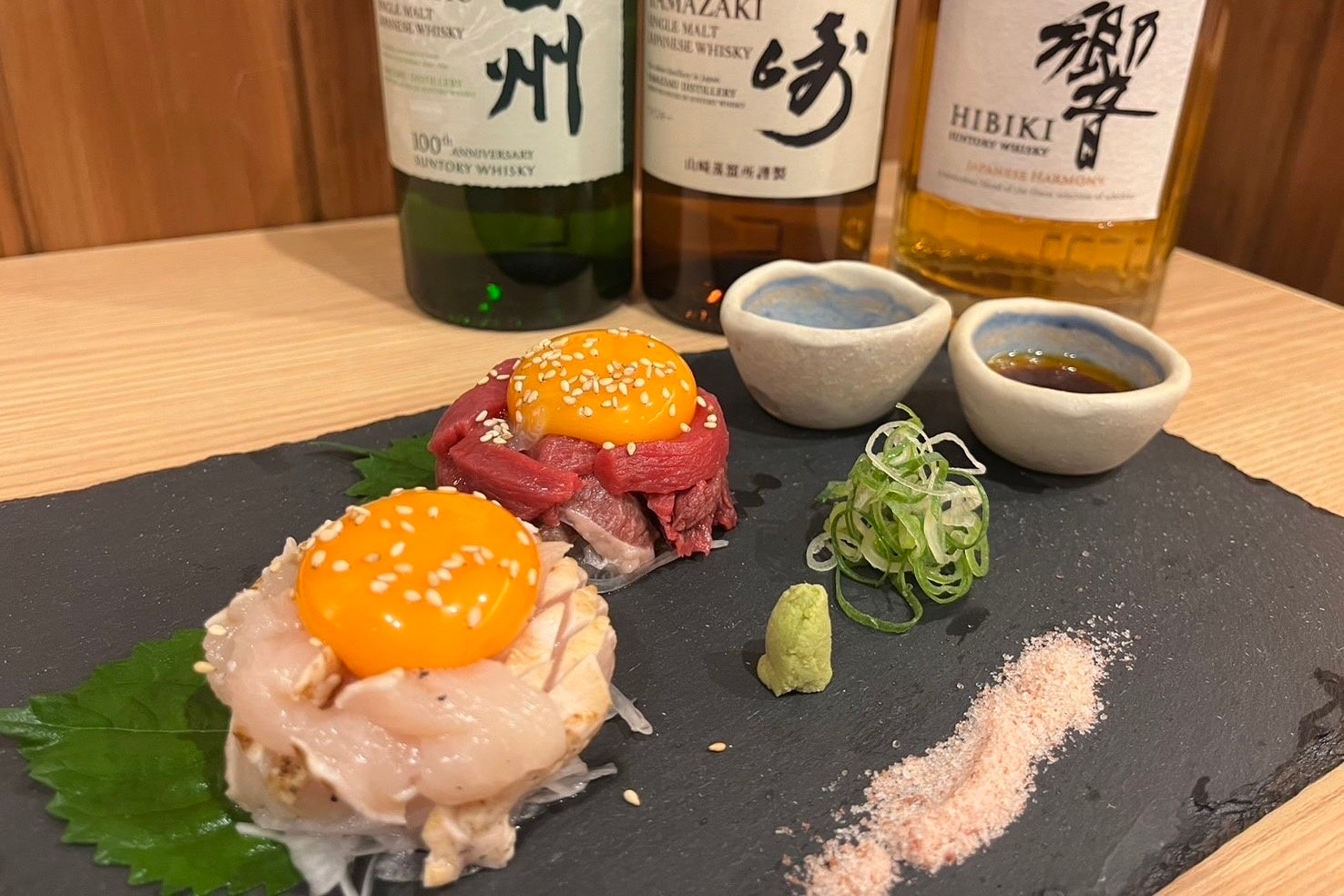 あなたはどっち派?馬刺しユッケと鶏の炙りユッケの美味しさを体験!絶品の食べ比べが楽しめる!【純国産馬刺しと朝引き鶏 にほんいち 大阪堺筋本町店】