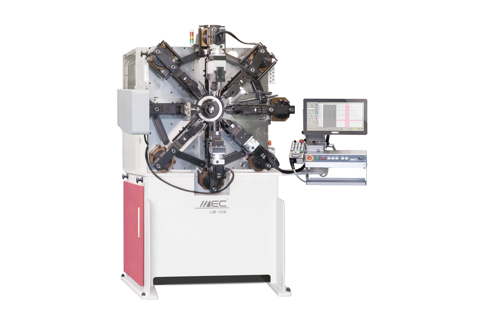 アマダグループの株式会社アマダプレスシステム(神奈川県伊勢原市、代表取締役社長:堀江 喜美雄)は、ワイヤ回転機構と8本の加工スライドで、直感的な操作を実現する15軸制御ワイヤ回転式トーションマシン「LM-26A」の販売を3月11日から開始します。トーションマシンは、ねじりばねを得意としながら引きばね、圧縮ばね、フォーミングなど、あらゆる線加工の成形が可能なばね成形機です。