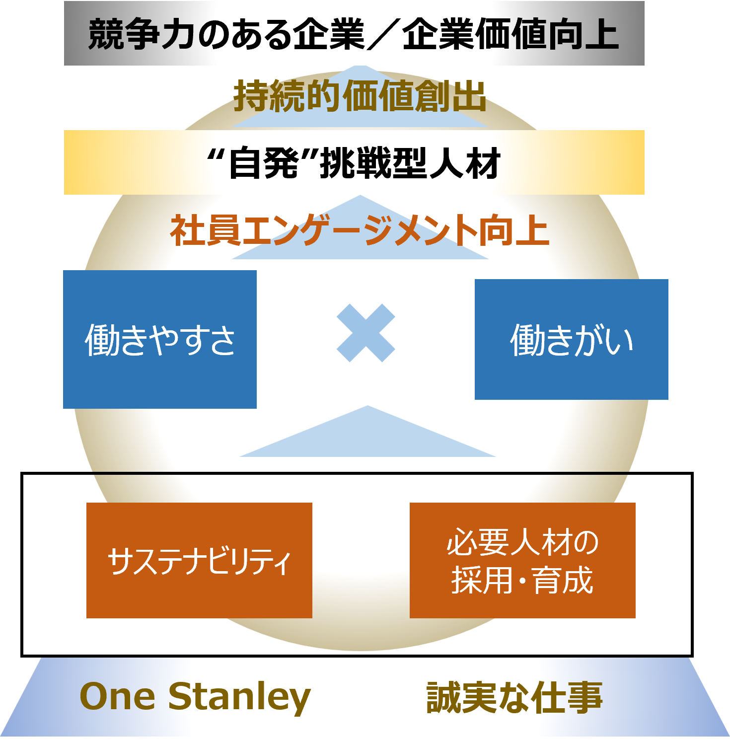 このような背景から、2024年度に人材方針を「“自発”挑戦型人材」と定めるとともに、人事政策のコンセプトとして「一人ひとりの力を競争力の源泉に」を掲げ、これに基づき制度や環境の整備を進めてきました。