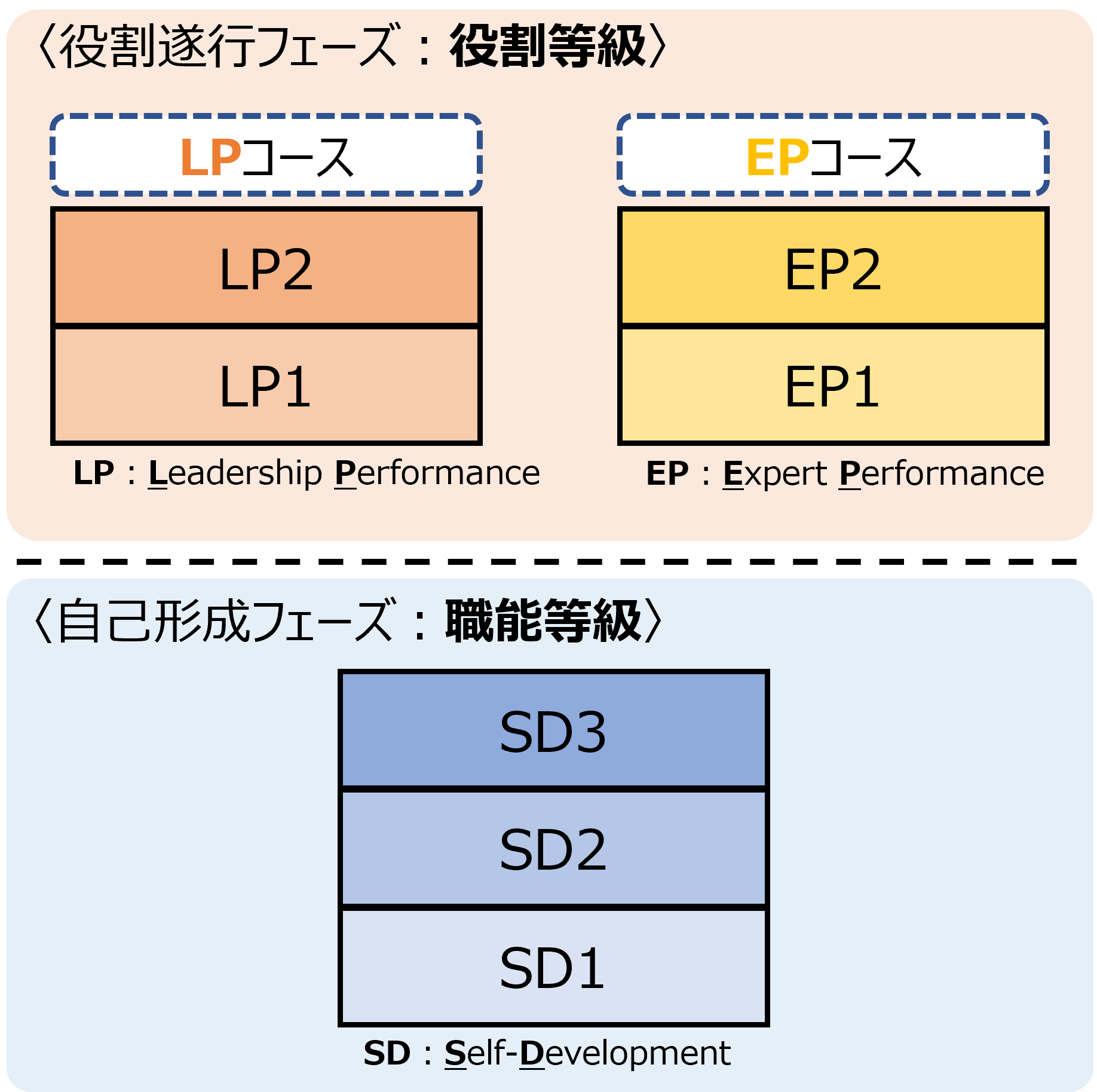 中堅以上の一般社員を「役割遂行フェーズ」と定義します。あわせて、保有能力を基準に等級を決めていた従来の資格制度を見直し、役割と責任の大きさに応じて等級と賃金を決定する「役割等級制度」を導入します。
